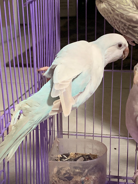 Diet: At Tropi Parrots, we wean all baby Quakers onto a healthy mix of plain cockatiel seed, Roudybush pellets, and fresh fruits and vegetables.