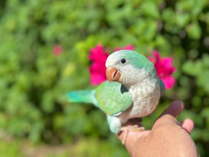 Meet the Sweetest Turquoise Opaline Quaker Parrot Baby!